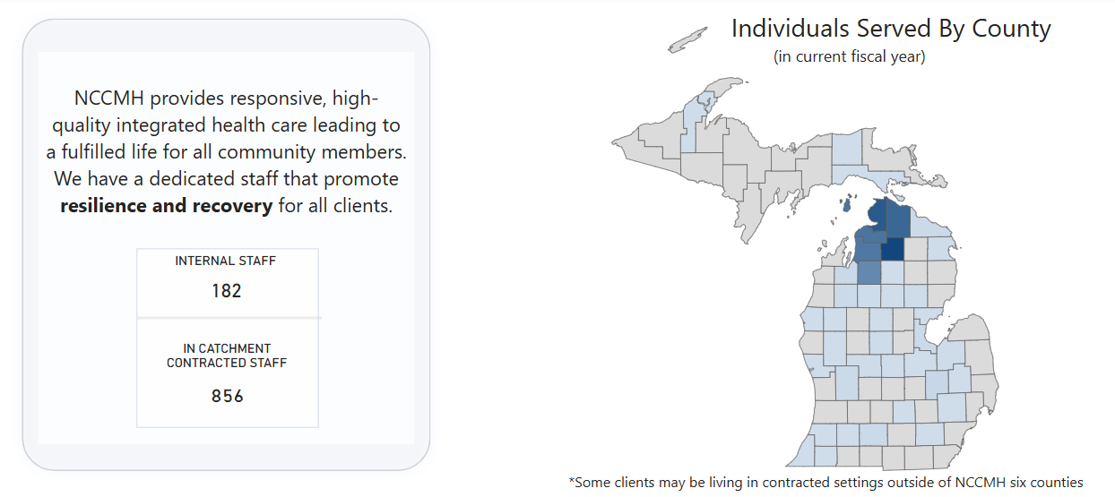 Clients are surveyed up to 4 times during the year. NCCMH aims to support positive life changes and maintain stability in key areas. The questions below help measure how many clients feel they had a positive movement from their first survey to their last or maintain stability in a positive way.